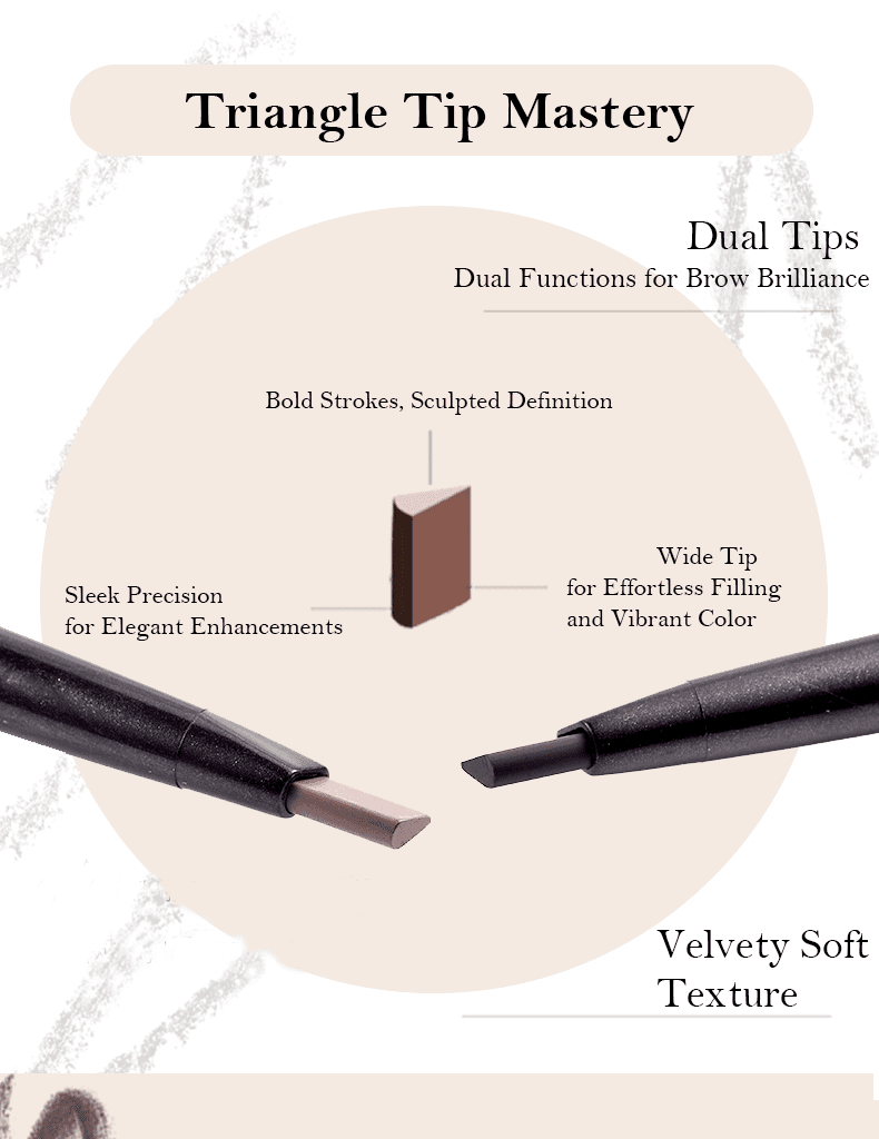 �� Triangle Tip Mastery: Say goodbye to uneven lines and hello to flawless brows! Our pencil features a unique triangle tip that allows for precise application and effortless mastery. Whether you're filling in sparse areas or sculpting your arches, this tip ensures perfect brows every time! ��