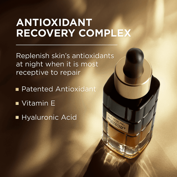 L'Oreal Paris Age Perfect Cell Renewal Midnight Serum, Give your skin a new beginning! REVEAL MILLIONS OF NEW SURFACE CELLS, VISIBLY YOUNGER SKIN: Age Perfect Cell Renewal Midnight Serum sets a new standard for luxury serums. In fact, WOMEN PREFER IT OVER THE #1 LUXURY NIGHT SERUM*. Formulated with an exclusive Antioxidant Recovery Complex, this powerhouse anti-aging serum works at night when skin reaches its peak of cell renewal. Millions of new cells are revealed for visibly smoother, more radiant and younger skin. EFFECTIVE FOR ALL SKIN TYPES TONES, it is made without parabens or mineral oil, and is allergy tested - suitable for even sensitive skin.