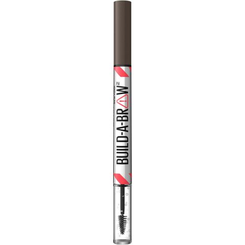 Maybelline Build A Brow 2-in-1 Eyebrow Pen and Sealing Gel, Black Brown, Meet Build A Brow, The 2-in-1 brow pen sealing gel that builds a fuller brow in just 2 easy steps. This waterproof eyebrow makeup delivers real-looking fuller brows for up to 24-hour wear. Brows look so real you can't tell it's makeup. It's also sweat-resistant smudge smudge-resistant and humidity-proof. it's ultra-precision pen creates hair-like strokes to mimic the look of actual brow hair, and it's clear sealing gel locks brows in place with a non-crunchy finish. Available in six brow shades for every brow type, Vegan Formula with no animal-derived ingredients. Ophthalmologist tested. Flammable until dry. Do not use near-fire flame or heat.