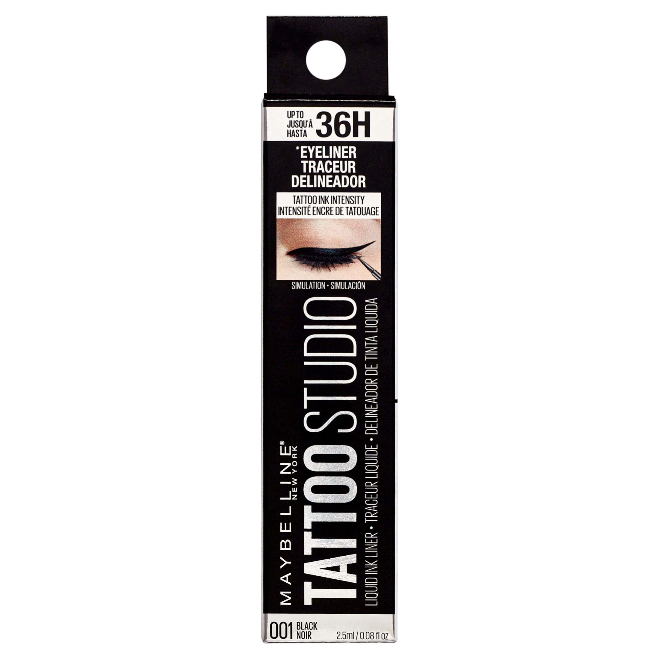 Maybelline Tattoo Studio Liquid Eyeliner Eye Makeup, Ink Black, Create your most attention-grabbing eyes yet. The fade, smudge, and the sweat-resistant formula glides on with one quick stroke. This game-changing liquid eyeliner features intense color pigments and a precision tip for effortless application. This semi-permanent eyeliner lasts up to 36 hours and disappears without a trace for zero mess removal. Benefits: Meet the liquid eyeliner that is up to 36 hours on, and off without a trace Long-lasting liquid eyeliner glides on smooth and delivers edgy eye impact in one stroke Fade, smudge, and sweat resistant.